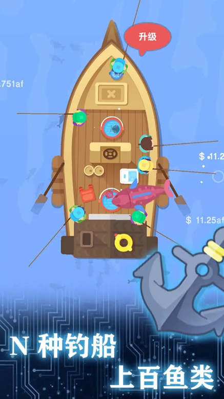 《一起来钓鱼》这款游戏当中,玩家将化身成为渔夫,将航船开入海域,并且进行一系列的垂钓以及捕鱼行动,游戏内的海域广袤无边,玩家可以开启无尽钓鱼模式进行挑战。