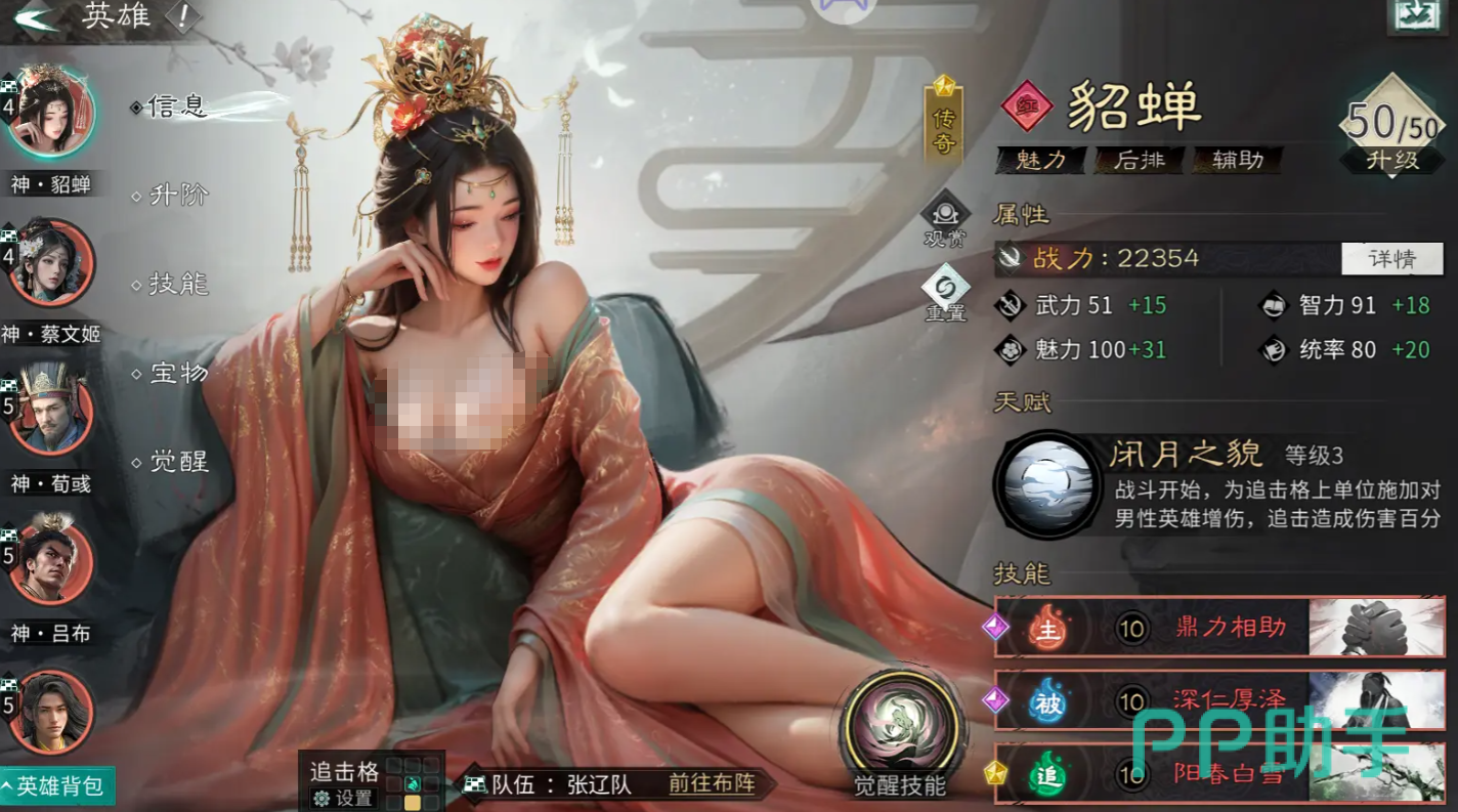 另一关键副将貂蝉,则通过“魅力”属性提供专属加成:当吕布成功触发追击时,貂蝉可进一步提升其攻击力与暴击率,形成“触发→强化→再触发”的正向循环。二者配合后,吕布单次行动最高可达成6段追击,且随着装备词条与等级成长,该数值具备明确的向上扩展空间。值得注意的是,该6次追击为当前版本实测上限值,不可叠加其他非机制类增益突破此阈值。