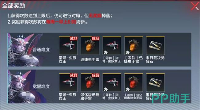 说到挑战模式,当然少不了一些强力BOSS。虫族女王就是其中的一员,她不仅外形威猛,更拥有强大的精神力。在与她的战斗中,你将体验到前所未有的压力。击败她之后,掉落的奖励可是非常丰厚的,不仅有联动的副武器“猎弩-虫族女王”,还有复刻自端游的经典武器——迅捷虫手雷,这种特殊的投掷武器,也为战斗增添了更多趣味。