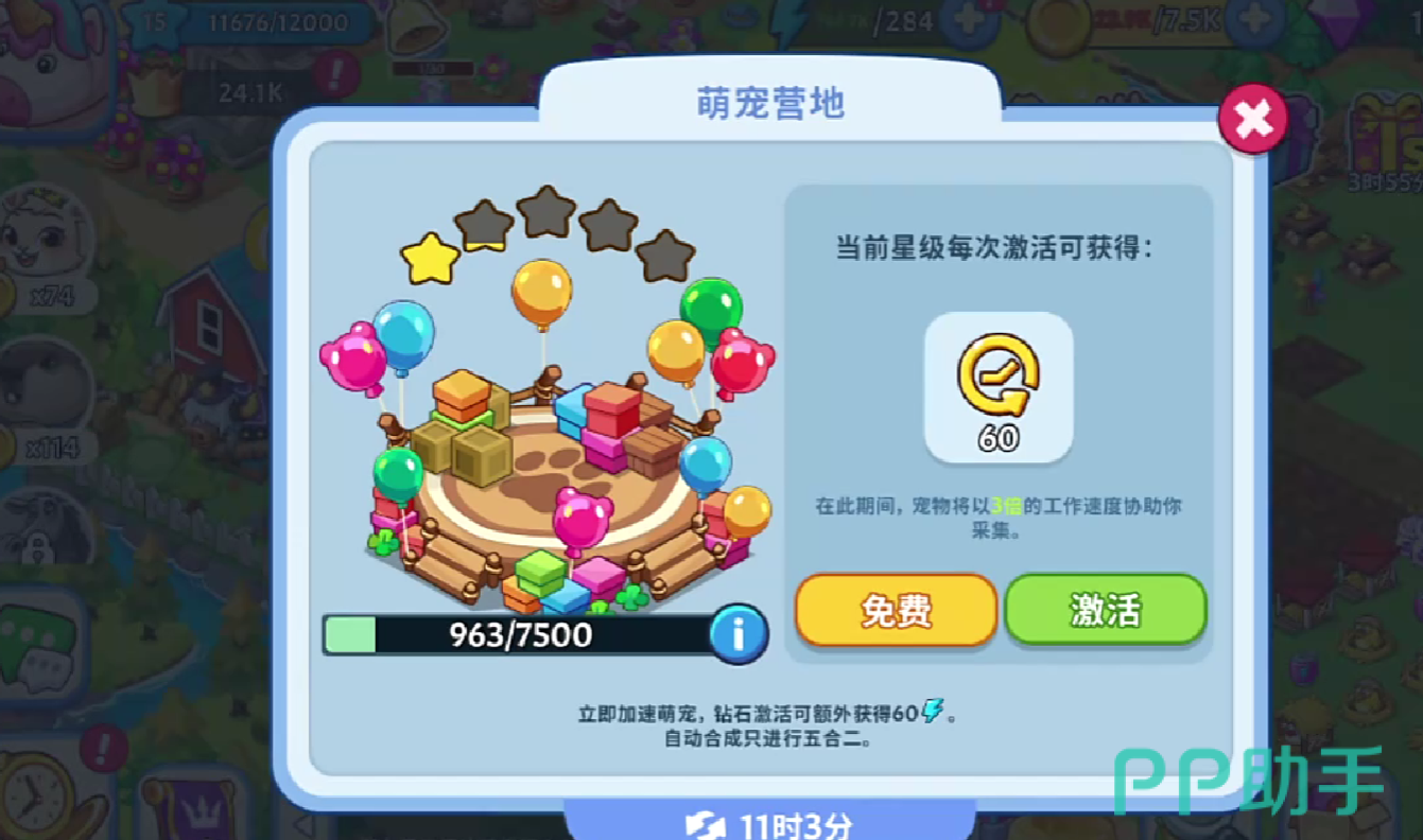 当然,玩家也可以通过消耗钻石的方案,来直接激活游戏的萌宠营地,当萌宠营地星级达到满星级时, 玩家才有开启冒险的资格。