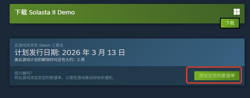 当前Steam页面仅显示“添加至愿望单”及“立即试玩”选项,无价格标签。参考前作《索拉斯塔:魔都暗影》国区首发价108元、历史最低价27元,结合本作在画面表现、系统深度与内容体量上的显著升级,预计新作建议零售价将处于100元至200元区间,具体数值仍待官方后续公告。