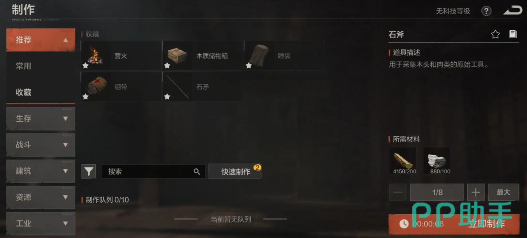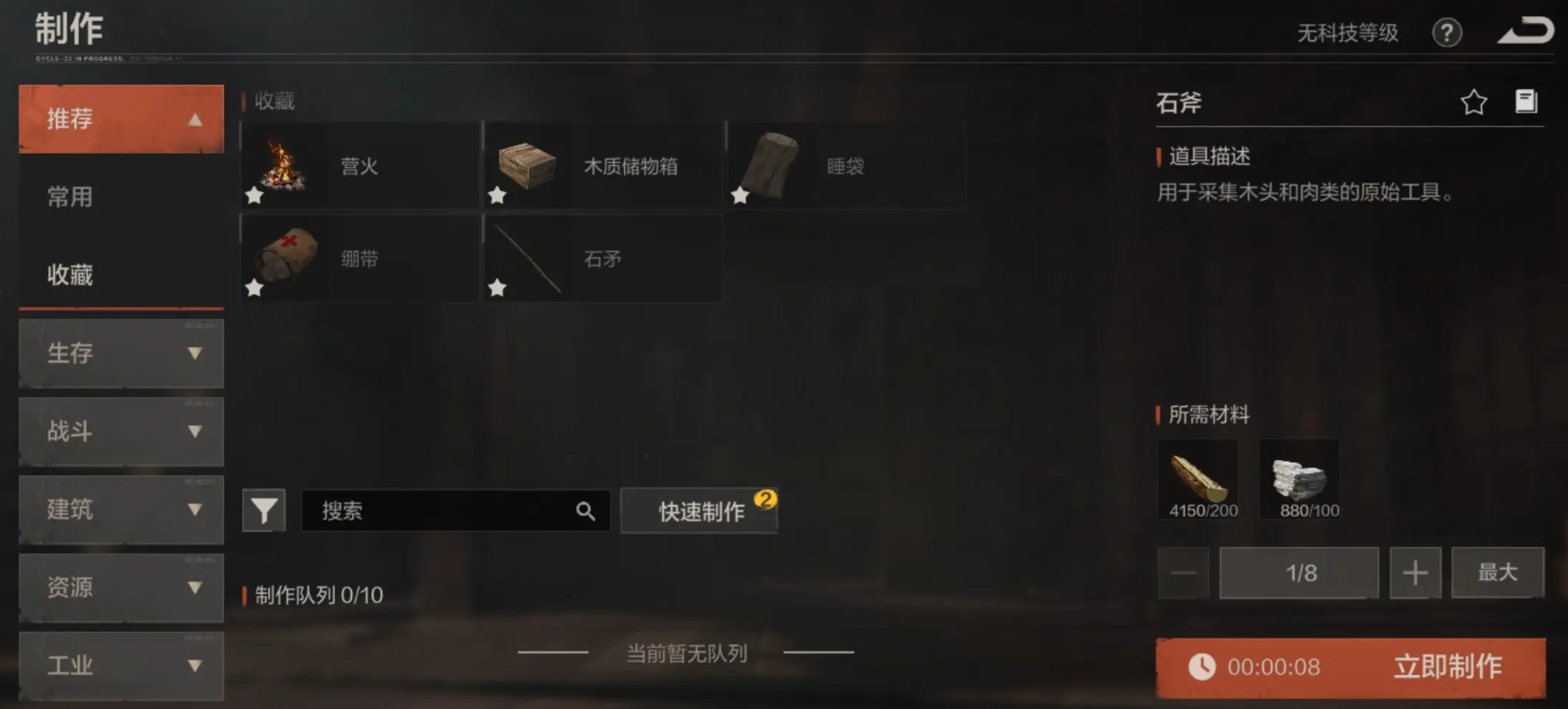 采集过程中注意瞄准资源点上的标记位置进行交互,矿石类则需寻找发光区域击打,可显著提升获取效率。积累一定材料后,建议优先制作石矛与睡袋,同时准备绷带用于应急治疗。随后观察周边低等级据点分布,携带武器前往清理。