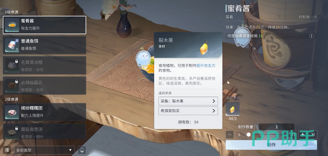 返回向NPC提交卷轴,对方将提出以【蜜肴酱】作为后续凭证。若已备妥,可直接交付;若尚未制作,需就近采集裂木果——该食材刷新点固定于地图特定区域,采集后使用烹饪功能即可合成【蜜肴酱】。