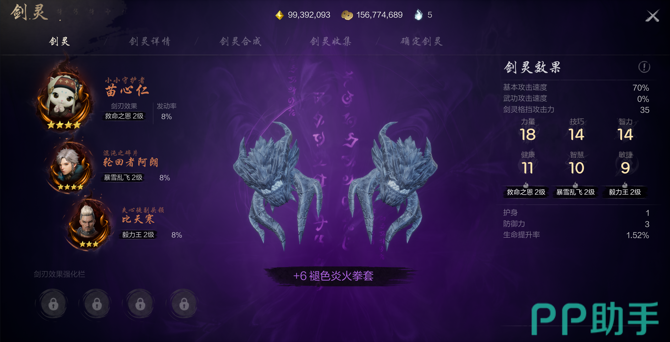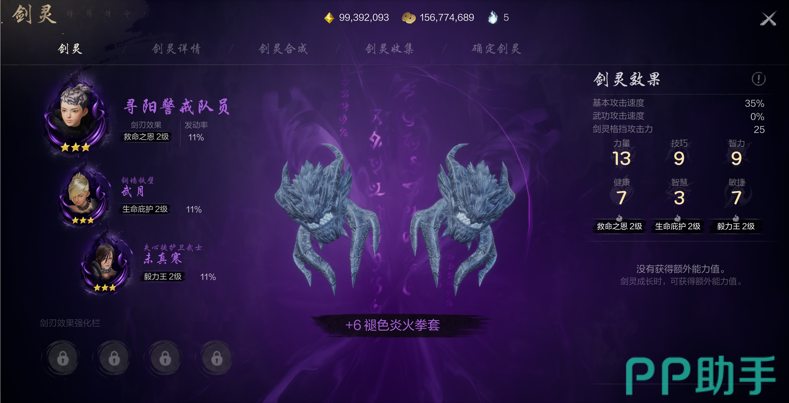 拳套是一个以力量为主的职业,这个职业的属性分为主属性和副属性,他的主属性就归属于力量,副属性的话则为健康,而武月这个剑灵的剑刃效果正好就是生命庇护,效果和拳套副属性的效果完全一样。