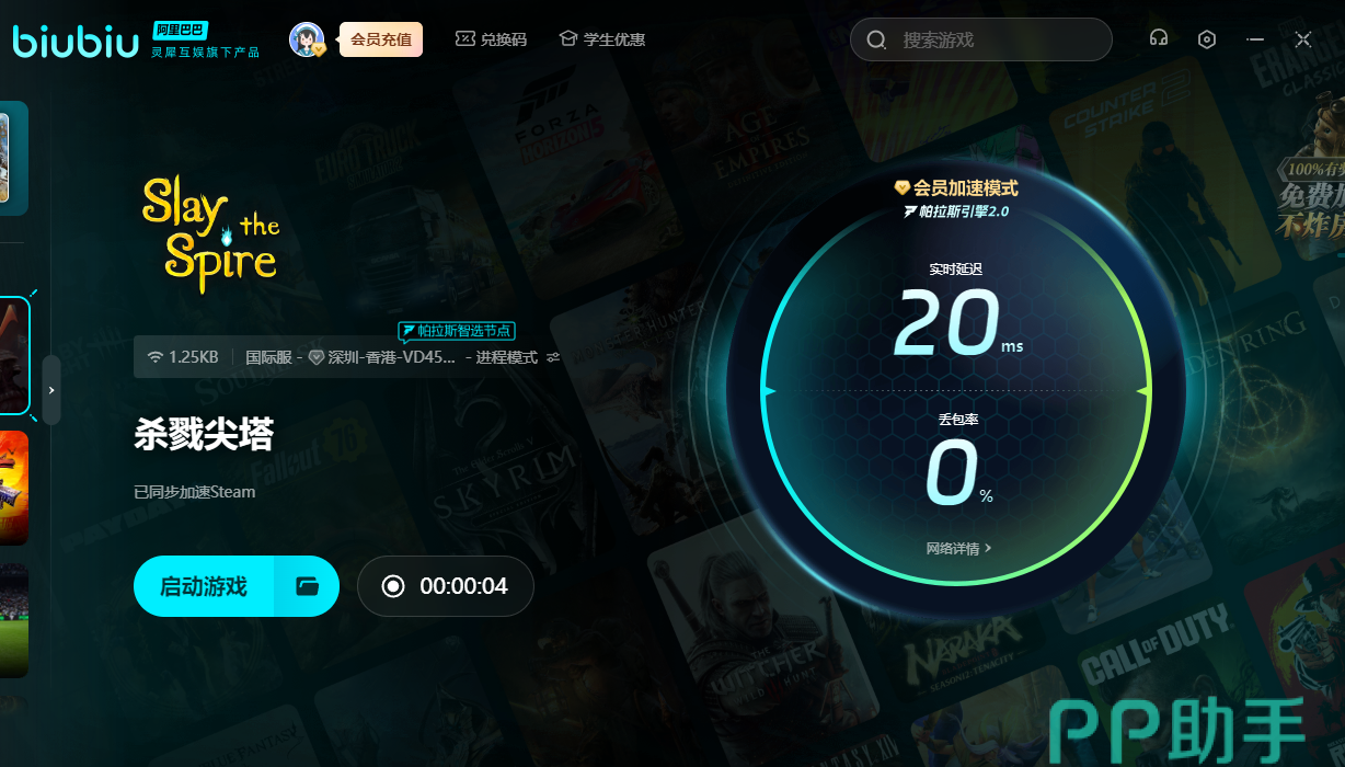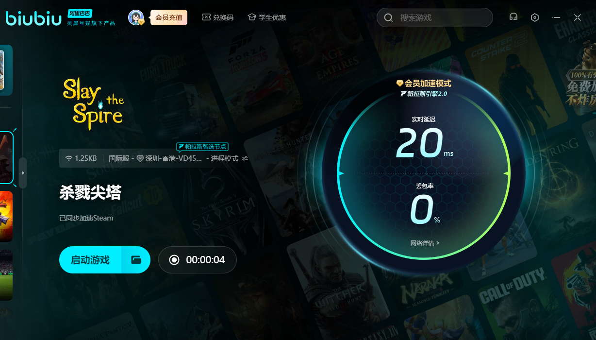如果我们想在真正的尖塔中疯狂屠戮敌人的话,就不能掉帧或者其他网络问题。杀戮尖塔掉帧怎么办?这时只需要毫不犹豫的启动biubiu之后,自然可顺理成章地避免掉帧,让你每次都可以发挥出自己100%的卡牌对战实力,避免落后太多。