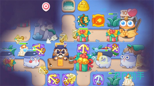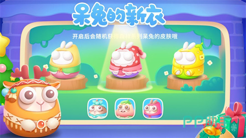 在这些关卡中,会出现一只穿着麋鹿服装的呆兔,它会拉着一个装满礼物的雪橇,沿着地图的路径行进。呆兔会不时地向地图上扔出一些礼盒,玩家需要用炮塔去打开它们,就可以获得一些圣诞糖果。