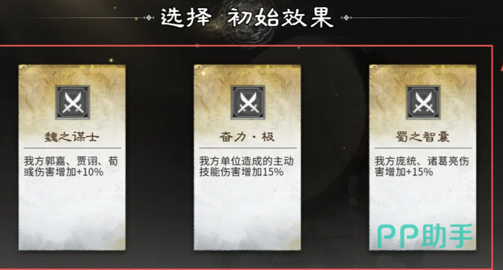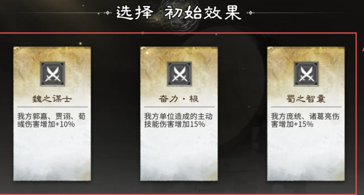 开局效果推荐优先锁定【奋力极】——该效果可使全体主动技能伤害提升15%,泛用性强,适配所有输出体系。次选【巧取豪夺武】,令我方武力最高英雄开场即夺取敌方20点武力,快速建立属性压制优势,显著提升前期稳定性。阵容构建上,前排双肉盾组合尤为关键:典韦与许褚构成经典防线。许褚天赋【背水一绝】具备350%单体爆发伤害,并在击杀目标后自动重选新目标继续血战,持续施压能力突出。