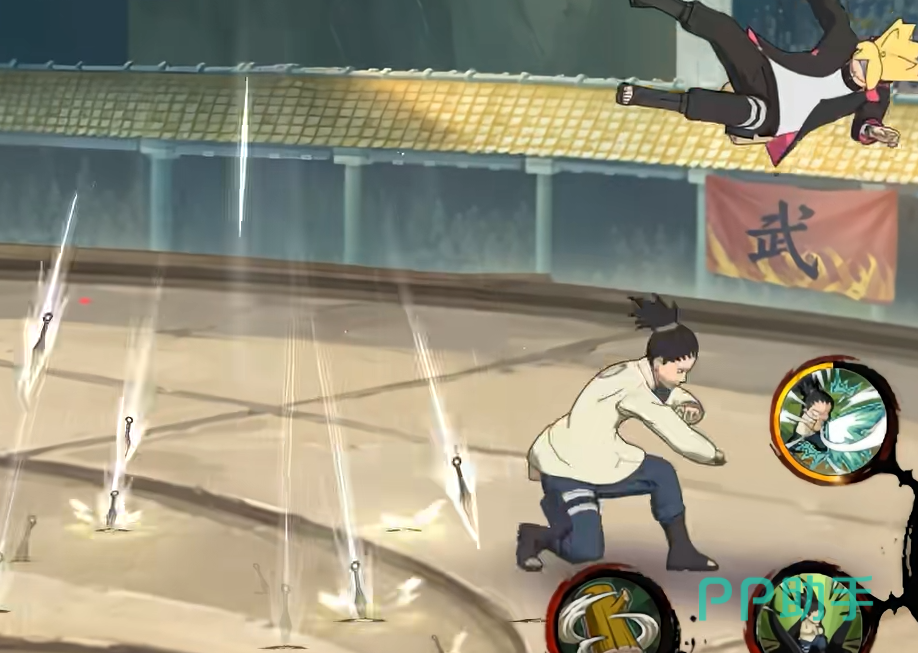 根据官方实装数据,奈良鹿台定位为影系控制型忍者,普攻共4段:首段为苦无突刺起手;第二段接横向连斩;第三段为转身跃升挑击;第四段为俯冲突进+命中爆炸效果。整体攻速较快,但基础攻击力未达T0梯队,强调操作衔接与时机判断。