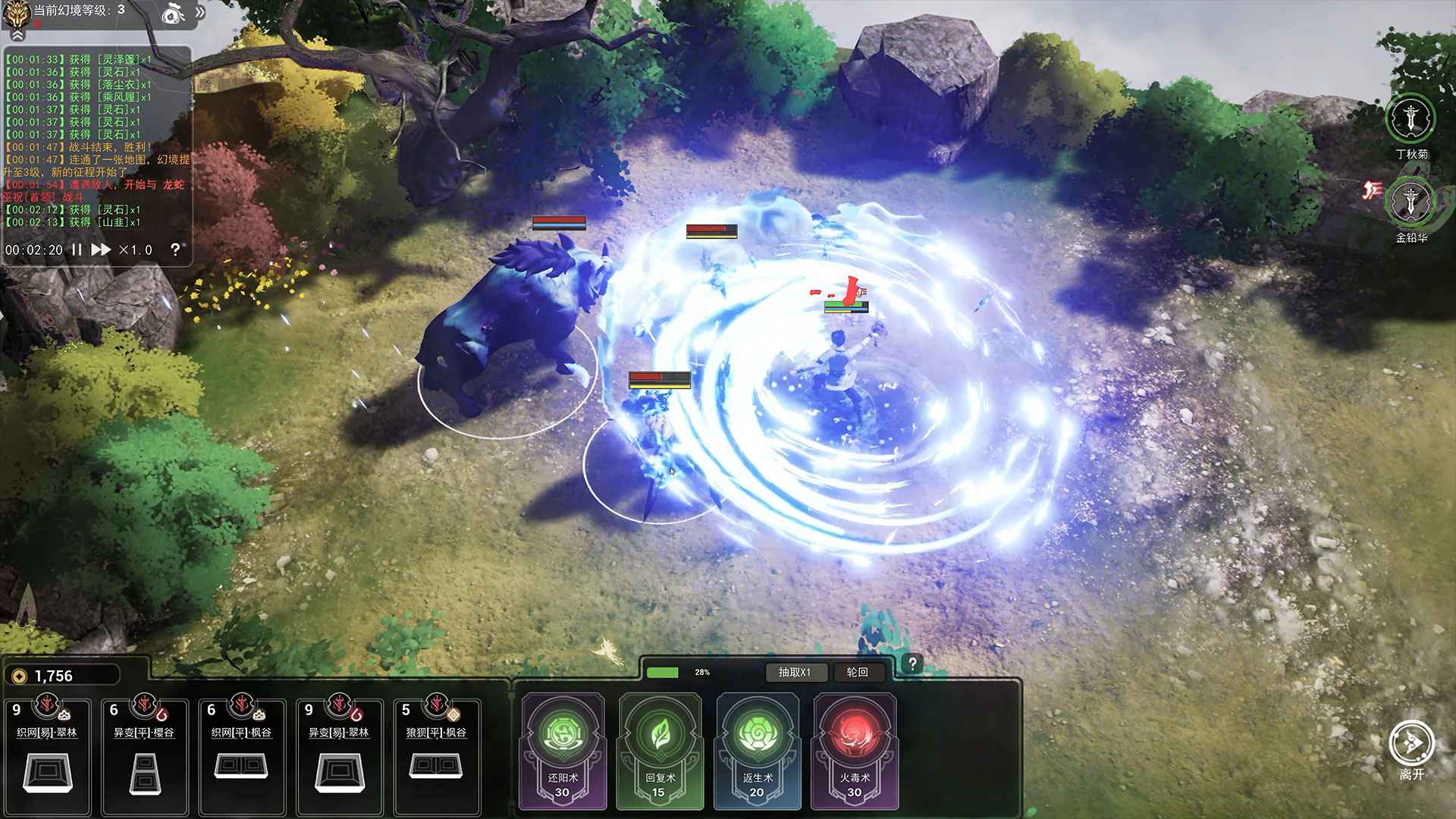 游戏中存在多个风格迥异的幻境,每一次进入都是全新体验,以初期解锁的仙魔之塔为例,玩家最多可派遣三人入场,该秘境掉落初期素材和武器,玩家可调整阵法和阵眼,入场后玩家可以自由探索,灵石由消灭怪物获得,技能会受到阵法影响,学习技能时优先选取带有技能组合标识的,当人物同时拥有并升满相关技能,即可组合成强力新技能。