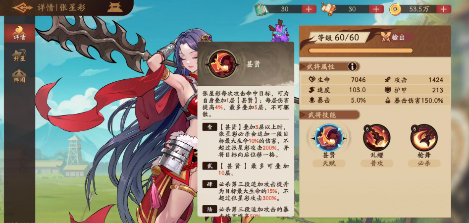 在《三国杀》武将觉醒版本中,张星彩作为无双品质武将,凭借高爆发、强连击与灵活位移机制,在近战输出体系中占据重要地位。其核心强度不仅依赖技能组合,更与命中率提升、层数叠加逻辑及阵图协同效果密切相关。若玩家希望最大化她的实战价值,需重点关注技能成长路径与关键数值阈值。