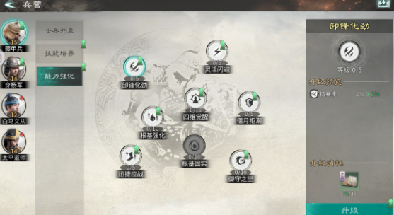 以骑兵突击流为例,该体系依托马超为核心输出点,其天赋可提升追击格单位的暴击概率,配合蔡文姬的余音增伤效果,显著增强连击伤害链。前排由夏侯惇担任坦位,凭借防御类技能有效吸收伤害,保障后排输出环境。此组合充分发挥骑兵在平原地形中的机动优势,适用于开荒期快速推进与资源掠夺。但需注意,在山地等复杂地形中,骑兵移速受限,应适时调整布阵或更换适配兵种的武将进行替代。