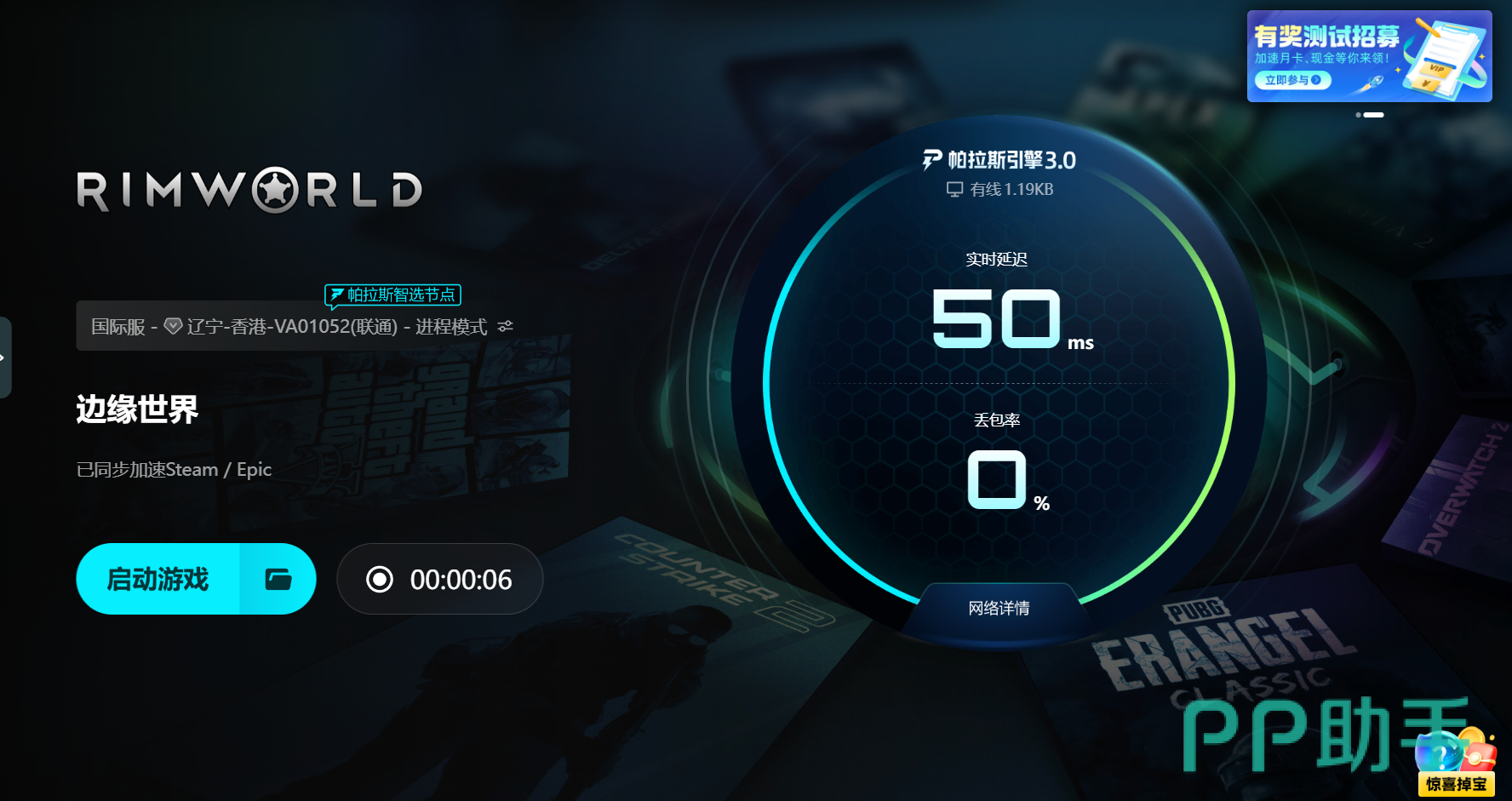 从操作体验来看,biubiu加速器界面设计简洁明了,易于上手。只需搜索“边缘世界”,点击加速即可自动完成网络优化,整个过程无需复杂设置。后台运行时资源占用极低,不会影响设备性能,同时兼容多种游戏平台,不仅能有效解决《环世界》进不去游戏的难题,还可为其他热门联机游戏提供稳定的网络支持。