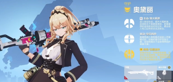 奥黛丽:是来自于家族的一位大小姐,在进入到驾驶状态时连续射击也并不需要去更换子弹,可以迅速地提升射击的速度。在架枪的模式下,还可以迅速的增强护盾的数值。