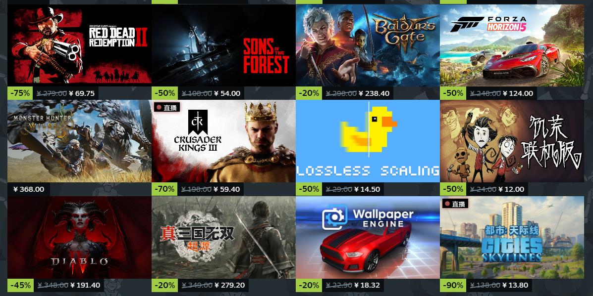 并不是所有的游戏都会打折,但打折的游戏数量庞大。例如暗黑破坏神4打5折,极限竞速:地平线5打5折,真人快打1打6折,知名游戏荒野大镖客也打5折。基本上一些比较出名,而且经典的老游戏都会参与打折活动,基本上都会打5-8折以上。这些游戏都将以较低的价格出现在玩家的眼前,玩家就可以任意的选择。