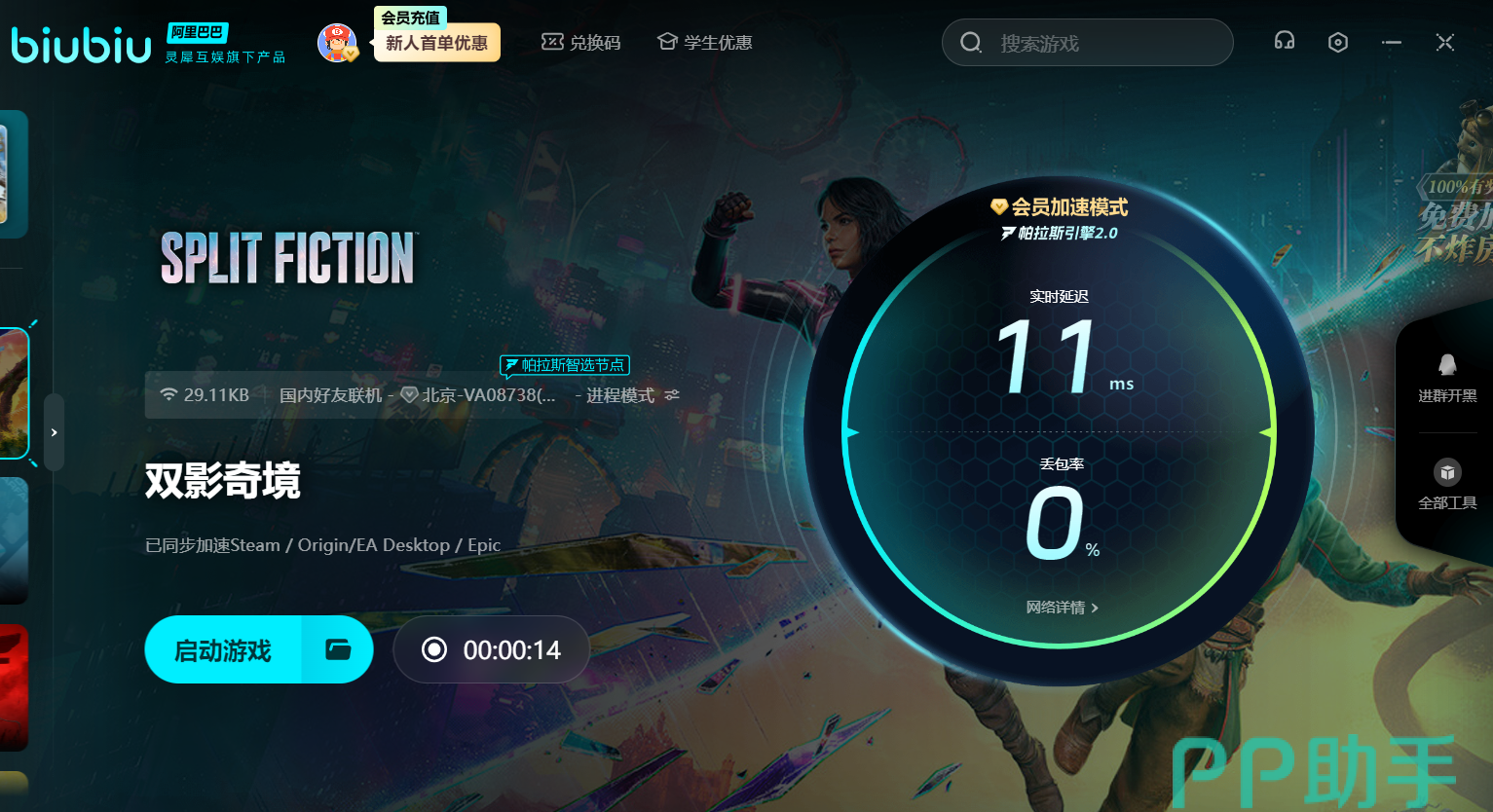双影奇境加速器下载安装攻略就为大家介绍完了,现在各位都学会了吧,现在就上Biubiu,拉上你的冤种队友,开启《双影奇境》的奇幻之旅吧。这款游戏,双人合作解谜、AI智能NPC互动、沉浸式剧情,M站评分92分,媒体狂赞“年度最佳合作游戏预定”,冲就完事了。