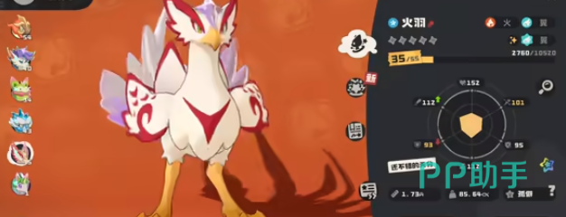 火羽是一只通过两只炫彩精灵繁育出的限定款,极为稀有。它并未呈现预期中的炽热红色,而是采用了淡紫与奶白相间的羽翼设计,展开时全身纹路泛着粉紫色光泽,整体散发出一种空灵仙气。遗憾的是,尽管名为“火羽”,却无法飞行,只能像普通地面宠物一样缓慢行走,骑乘时还需挎在背上,多少有些不符合其名字带来的期待。