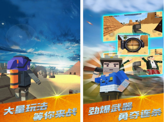 这是以进入像素战场,展开吃鸡的游戏,涵盖大量的玩法,也有超级劲爆的武器。你将化身为游戏中的方块人,拿着各种武器与对手进行较量,涵盖很多的场景具有极高的自由度,无论是空旷的场景中,还是有着很多房屋的地方,都需要精准的对敌人完成射击。更要有效地使用游戏中的诸多道具,在全新的地图当中展开追杀,享受刺激的追逃之路。