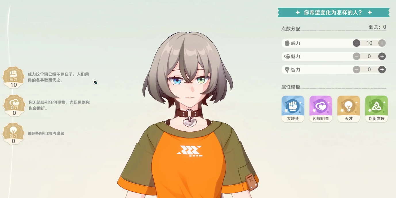 本作的女主角即为玩家所操控的角色,支持高度自定义外观,包括发型、发色、瞳孔颜色等细节均可自由调整。无论是打造一位金色长发的傲娇少女,还是塑造黑发垂肩的冷静形象,都能轻松实现。更特别的是,角色还设有属性分配系统,可自由加点魅力、智力等数值——选择魅力路线,能收获NPC对美貌的频频称赞;倾向智力发展,则可化身推理高手,在剧情中破解谜团。