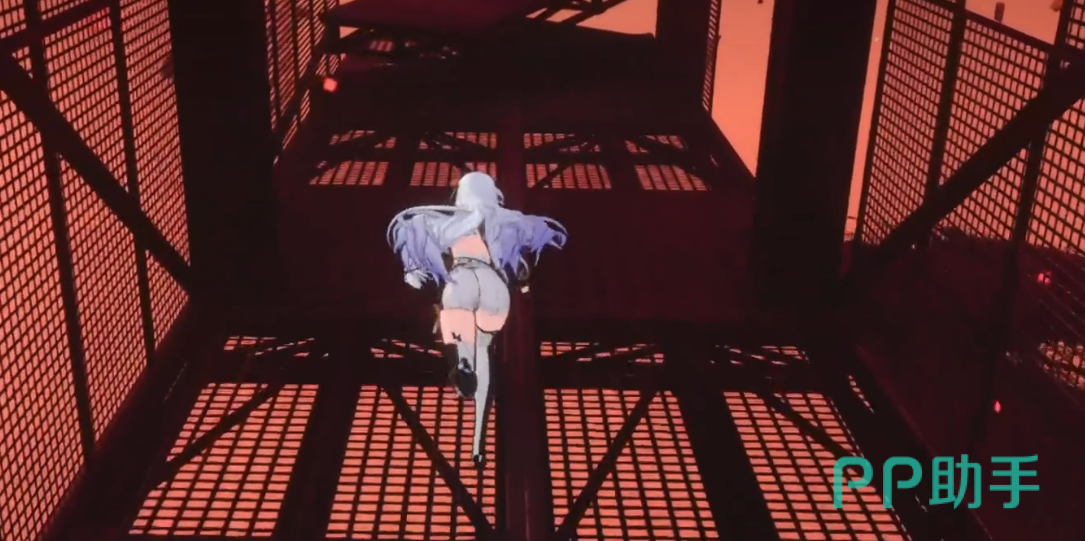 第三步:跨过裂隙后,前方可见由红色金属管件组装而成的立体框架结构(外观近似工业风铁笼)。攀爬至其顶部平面,站稳后面向来路方向,利用顶部铺设的木质跳板进行反向纵跃。落地点为一根水平延伸的镀锌钢管,沿管面稳步前行至末端,终点连接一根垂直竖立的混凝土承重柱。
