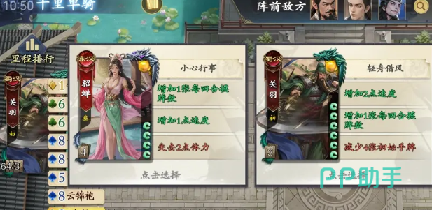 起手资源配置同样影响成败:初始手牌阶段,“青州借风”为必选效果,其提供的2点固定速度加成可确保我方绝对先手;每回合多摸一张牌的选项需优先锁定,即便部分分支会减少初始手牌数量或取消激励效果,但换取的持续过牌能力与技能释放频率提升具有不可替代性。坐骑选择白蹄乌,进一步扩大速度差优势;防具组合推荐云锦袍与银狮盔,二者在提供必要防御的同时,不牺牲攻击面板与技能发动效率,维持攻防比最优解。