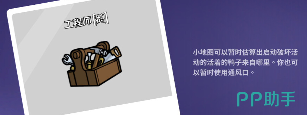 工程师:具备地道通行与藏身处驻留能力,可实现跨区域快速转移或规避追击。小地图实时显示鸭子破坏点位置,大幅提升信息获取效率。该身份兼具机动性、隐蔽性与侦查辅助功能,尤其适合擅长地图结构理解与时机把控的玩家,在防守与反蹲场景中表现突出。