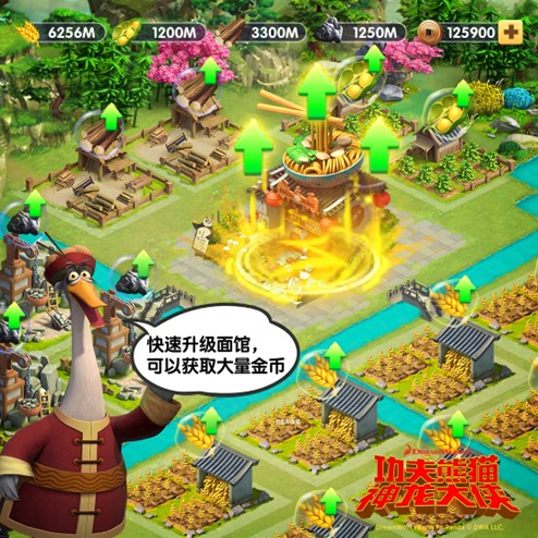 • 农田产出食材 → 面馆加工为功夫菜 → 提供英雄培养材料