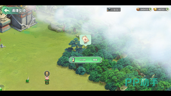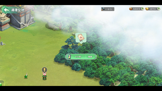 观察主界面左侧林地区域,使用「地契」委托建筑队执行清理作业,即可开辟全新建设空间。
