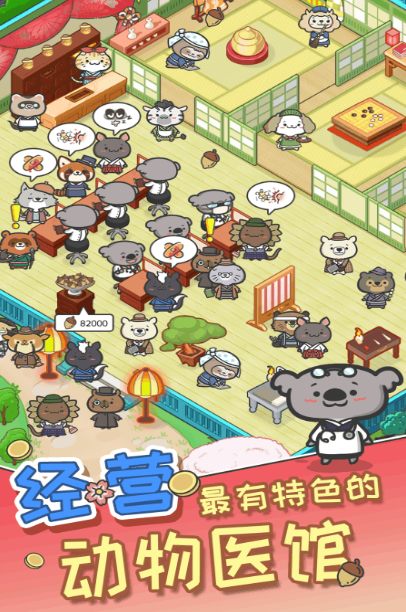 游戏一开局,你就是动物医院的院长兼医生,其中的小动物们都是拟人化的,或是猫猫,或是狗狗,又或是小鸟等等,品种丰富,你可以根据他们的病症来进行不同的手术操作,这极其考验你的耐性以及手速。游戏中,治疗好小动物就可以收取奖励,你会拥有一笔可观的收入,这时你就可以大展创意,给医院进行由内而外的改造。