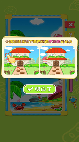 为几岁的孩子挑选找不同游戏是一个极佳的选择,这款游戏能以轻松愉快的方式有效促进他们的动手实践能力和思维灵活性。游戏启动时,会展示两幅相似的图画,小朋友的任务就是在仔细观察后,发现其中的细微差别。此外,游戏中还融入了拼图挑战和模拟采摘水果的环节,让孩子们在享受游戏乐趣的同时,仿佛置身于大自然之中,体验探索的乐趣。