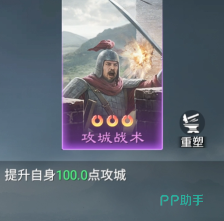 “攻城战术”是一张功能性强的技能卡,专为攻城场景设计。装备该技能的武将可获得100点攻城属性加成,大幅缩短破城时间。尽管PVP对战中作用有限,但在城池争夺战中表现突出。由于前期获取不易,建议玩家一旦获得即妥善保留,待后期关键战役时启用。