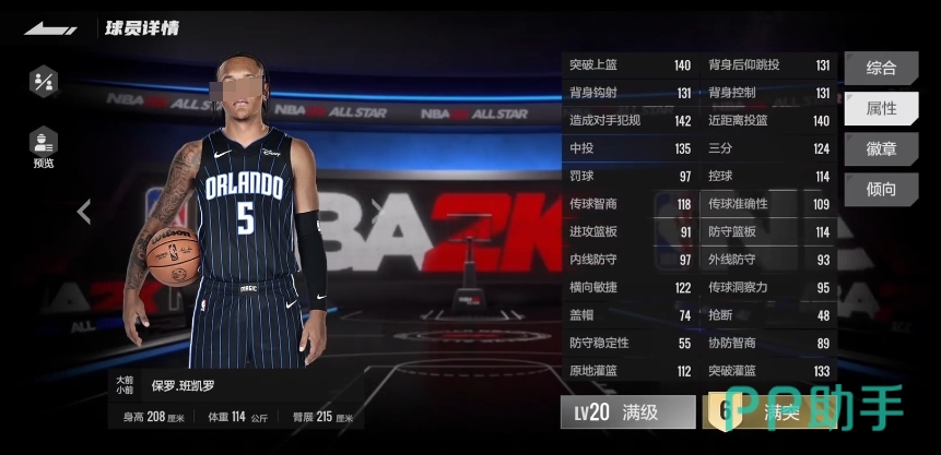 从球场定位来看,保罗·班凯罗在游戏中主要司职大前锋和小前锋的位置,这一位置设定使得他在场上需要承担起多面手的角色,既要在内线展现出强大的对抗能力,又要具备在外线进行精准投射的技巧,在身体模板方面,班凯罗拥有令人瞩目的体格条件,他的身高达到了208厘米,体重为114公斤,臂展更是长达215厘米,这样的身体条件赋予了他在篮下强大的统治力,无论是在篮板球的争夺还是内线的强攻中,他都占据着明显的优势。