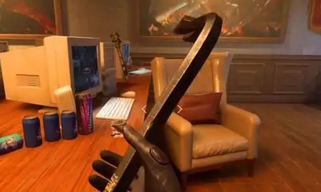 进入房间后,地面分布三个标有问号图标的触发点,依次踩踏即可获得金币奖励。房间右侧设有一台自动贩卖机,使用任意武器击毁后,将掉落大量金币。此外,场景中还包含多个可交互柜体与抽屉,开启后可随机获取金币及枪械配件,涵盖瞄准镜、握把、弹匣等实用装备模块。
