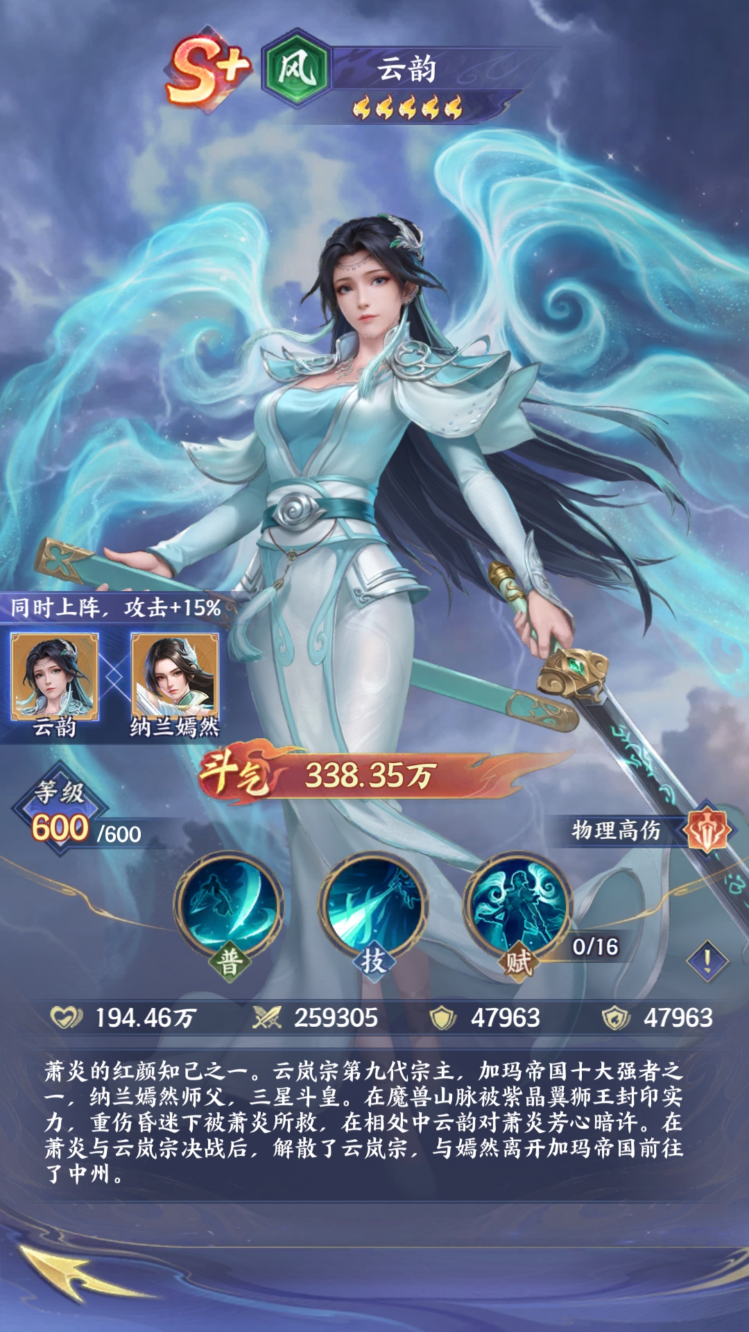 云韵(风·物理高伤):单体穿透型物理输出代表,技能组合强调精准打击。普攻具备物理穿透属性,大招“风刹湮罡”锁定敌方后排实施定向击杀,天赋提升暴击触发率,形成高爆发秒杀链。与纳兰嫣然激活羁绊后获得15%攻击力加成,特别适用于针对敌方核心C位的战术部署,在PVP针对性压制与副本关键阶段斩杀中表现优异。