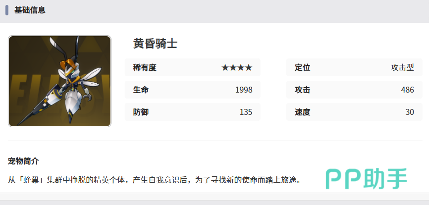 伊瑟这款游戏拥有众多角色,而智壳系统的搭配策略也十分丰富。本期要介绍的是“黄昏骑士”这一智壳,了解伊瑟黄昏骑士强度如何,是决定是否将其纳入阵容前的重要参考。从外观上看,黄昏骑士呈现出类似蜜蜂的造型,极具辨识度。作为输出定位的智壳,其技能机制在实战中具有显著的战略价值,因此在搭配角色时需深入理解其技能特性。