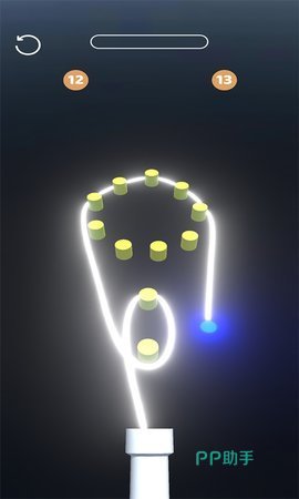 《霓虹绕绳子》针对绳子进行了动感闪烁的光效设定,整体呈现的画质效果夺目吸睛,游戏在场景中加入了回环曲折的木桩,玩家需要运用绳子,结合着灵机一动的头脑,把木头桩全部围绕起来,每个场景中木头桩的位置,都有着变化万千的设计,玩家需要因地制宜,去运用出精妙入神的绕法,设计了多类型精致动态的关卡。