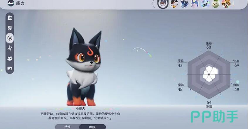 小炭犬可以说是解谜与速通核心,主线第一章自动捕获,火系专精。解谜操作细节:一方面可以点燃机关,长按喷火技能瞄准木材中心红点持续2秒(短按会点火失败)变身小炭犬后,冲刺键+跳跃键可触发“滚火球”加速,持续8秒冷却15秒,适合跑图。15级进化为焚火狼:火焰范围扩大50%,但移动速度降低,建议保留小炭犬形态赶路。