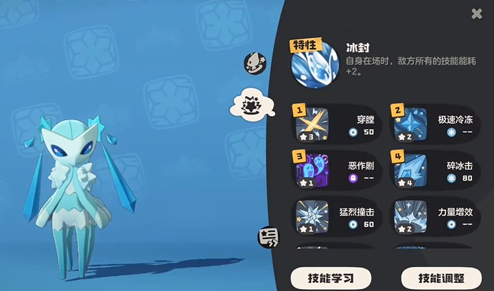 常规对战搭配暴风雪+冰之雾+冰冻之风+暗之诅咒,暴风雪作为主要输出技能,凭借高威力打击敌方,冰之雾持续输出并尝试触发冻伤效果,冰冻之风降低对方速度,保障自身出手优势,暗之诅咒则用于削弱敌方防御,提升整体输出能力,这套搭配适用于大多数常规对战场景。