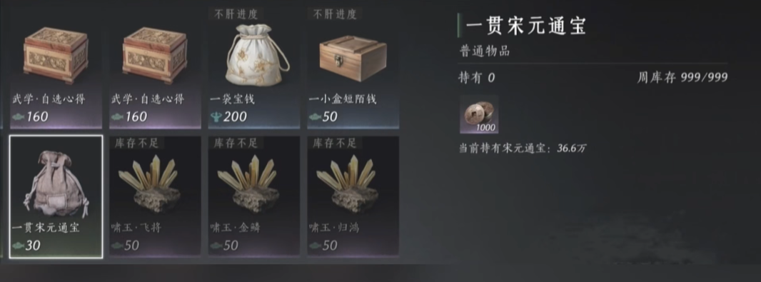 第二种有效途径是通过代币兑换系统获取。游戏中支持使用周元、月华和墨筹三种代币来换取宋元通宝。需要注意的是,此类兑换设有每周上限,总计可兑换36万宋元通宝。建议优先利用活动期间积攒的多余代币进行转换,以提升整体养成效率。