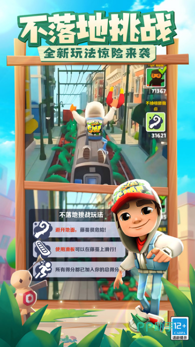 这是一款轻松有趣又不失挑战性的跑酷类休闲手游。在游戏里,玩家会化身为热爱涂鸦的少年,于地铁轨道之上开启一段刺激又精彩的奔跑冒险。游戏的画面十分精致,色彩搭配绚丽夺目,操作简单易上手。玩家需灵活躲避迎面而来的火车和障碍物,同时收集金币和道具,挑战自我极限。随着游戏进程,速度逐渐加快,考验玩家的反应与操作。丰富的角色与滑板选择,让游戏更加多彩。快来加入这场无尽的奔跑冒险,体验速度与激情的碰撞吧!