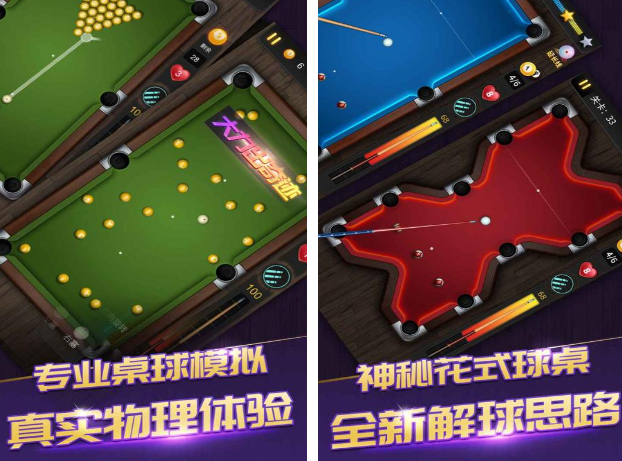 游戏会有逼真的画面,通过精准的物理引擎,让玩家在这个虚拟大世界就能感受到与众不同的台球乐趣。游戏里面还拥有多种不一样的辅助功能,例如会有碰撞轨迹线,还会有预测线等等。玩家还可以选择去参加多人对战模式,在这个模式中就能有机会对决全球的玩家。当然游戏里面还会有挑战模式,人家在通过新的关卡之后,还能继续的解锁。