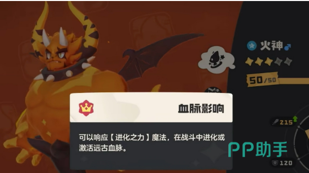 完成首领化后,火神蜕变为烈火战神,核心机制升级为“助燃”效果——该特性不再因换场而清空层数。这一改动彻底改变了技能协同逻辑。推荐技能组调整为:防御、热身、吹火、暗突袭。“防御”延续减伤功能;“热身”取代力量增效,其效果为下一次技能威力翻倍,与持续累积的助燃层数深度绑定,实现精准爆发;“吹火”成为新核心输出技,每次使用均提升20点基础威力,无上限叠加,契合持久作战场景;“暗突袭”兼具高额伤害与吸血效果,有效缓解站场压力,提升续航稳定性。