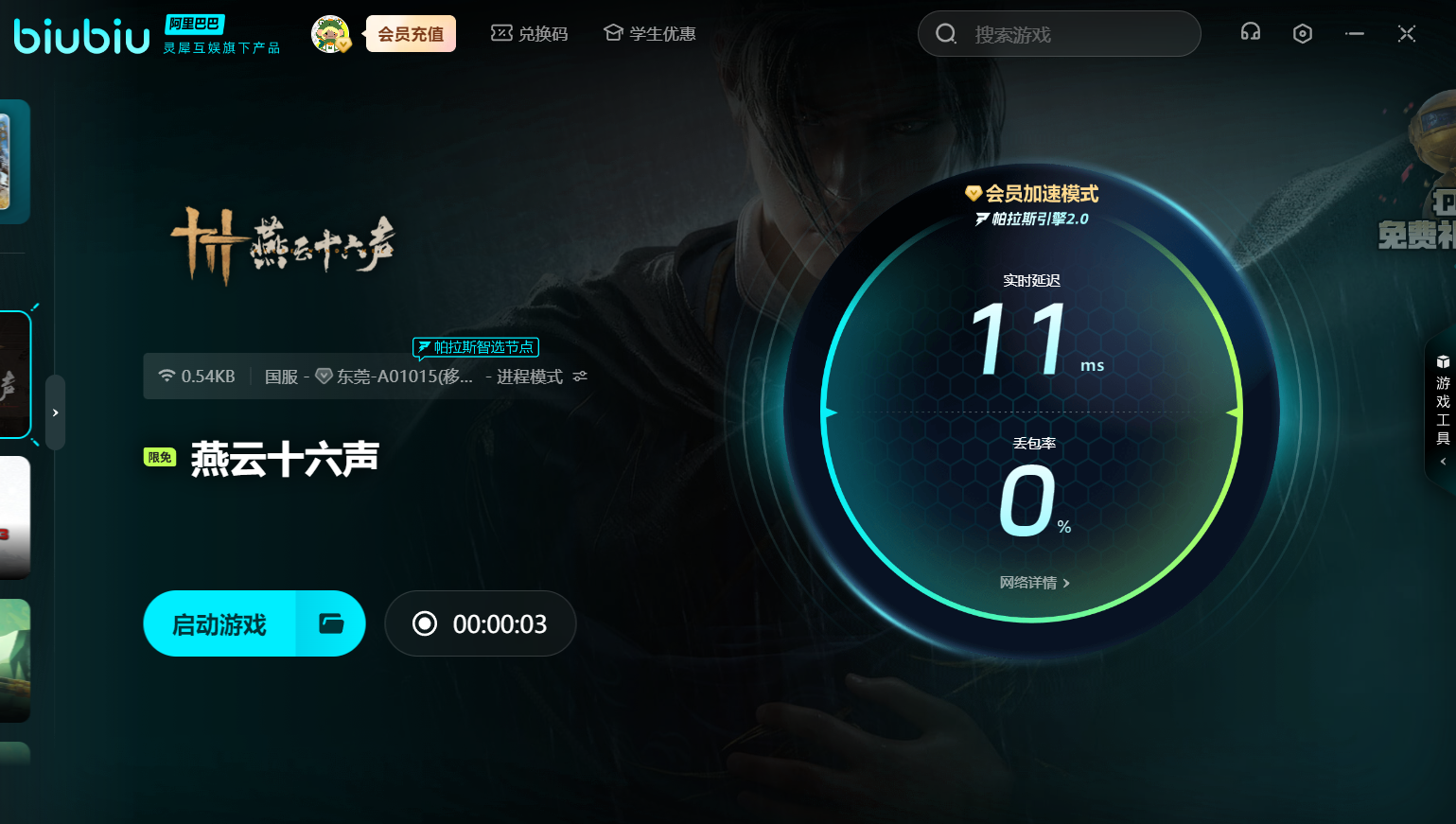 biubiu使用起来也非常简单,平台涵盖市面上绝大多数热门游戏,轻松满足各类玩家需求。想加速《燕云十六声》时,只需在软件首页直接搜索名称,点击图标即可一键加速。更棒的是,目前国服还推出限时免费加速福利,不充值也能享受网络优化服务,简直太贴心。