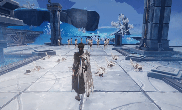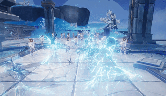 “霜剑拂流星”可进入“借相”状态,同时召唤大量“古今刀剑”自天而降,对落点区域内的敌方单位造成光属性伤害。在借相状态下,角色的近战武器将变为“剑非剑”,使用该形态进行攻击并触发特定效果后,可生成一把“羽非羽”作为额外输出手段。