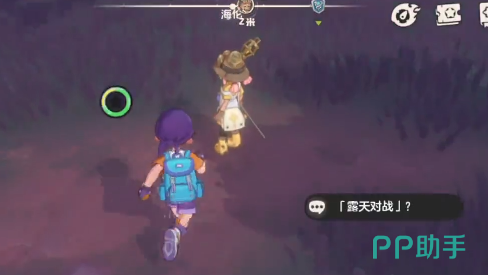 海伦位于王国监狱与魔法师之家之间的道路上。建议先传送到望风半岛的魔力源点位,随后转身沿后方小路前行,即可看到这位佩戴独特头盔的NPC站在路边等待挑战。
