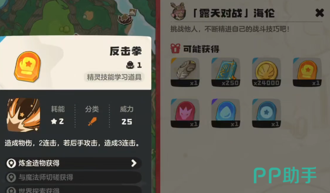随后再次派出火神对抗蒲公英娃娃。最终对手为地系精灵泥吼牙,其“黏糊糊”特性可能延长战斗时间。需要注意的是,胜利条件不仅限于击败所有精灵,也可通过耗尽对方能量实现制胜。成功通过挑战后,玩家将获得包括货币、羽毛、经验和洛克贝在内的奖励,同时有机会获取“反击拳”与“绵里藏针”两个技能。