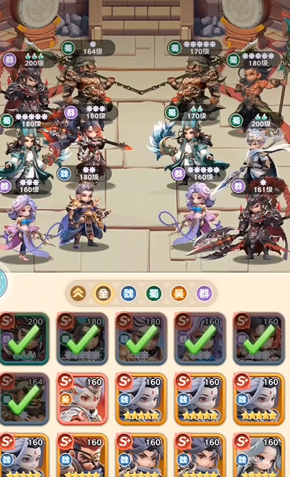 阵容构建无需强求一步到位。新手期武将池有限,可优先采用蜀国+群雄混搭方案:蜀国武将普遍具备稳定技能循环与生存能力,群雄武将则多提供范围压制与破防效果,二者协同可覆盖多数前期副本需求。随着武将数量积累与品质提升,再逐步过渡至魏吴专属体系或跨阵营强力组合,避免因盲目追求“完美阵容”导致资源错配与养成断档。