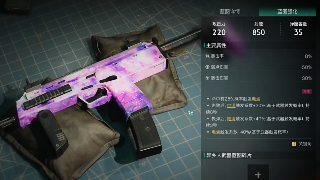 “MP7”这把元素冲锋枪在同类武器中也是极为出色的。其基础攻击力虽不算顶尖,但它的射速和弹匣容量都非常令人满意,特别适合中近距离的快速战斗。更让人心动的是它的特殊能力,命中敌人时有25%的概率触发电涌效果,击败敌人或者换弹时,电涌的触发率直接提升至100%。不仅如此,这把武器还能让敌人进入电涌异常状态,这一状态将大大增强你对敌人的伤害输出,尤其在战斗中,频繁触发电涌的情况下,敌人几乎难以抵挡它的攻势。