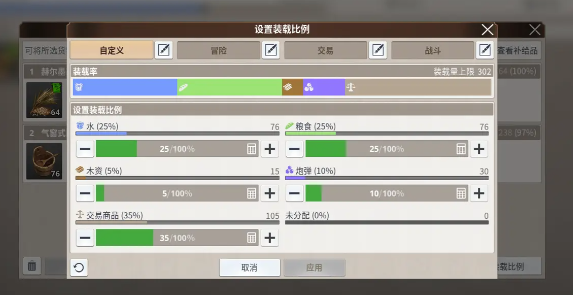 每次停靠港口时都应完成必要的物资补充。在“旅馆”可招募新船员补充人力,“造船厂”用于修复船只损伤,“出港所”则负责水、粮、炸弹等基础资源的装载。在执行补给前,建议先进入比例设置界面,自定义各类物资与商品的携带比例,从而适配当前航行目的,无论是长途探险还是短程贸易都能做到精准规划。