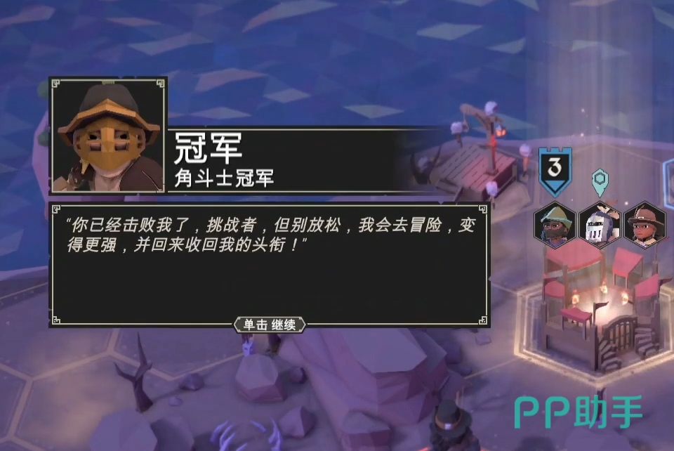 成功击败冠军后,玩家可根据自身需求决定后续行动:若希望立即体验角斗士,可退出当前游戏并新建一局,在角色选择阶段启用该单位;若想继续当前进度,也可前往丛林区域承接任务。角斗士具备出色的综合能力,不仅能在城市使用“纵情狂欢”技能获取金币,还能在战场上发动“荣耀”提升攻击力。无论是作为输出核心还是独立作战单位,他都表现出色,且操作难度适中,适合已掌握基础玩法的玩家使用。