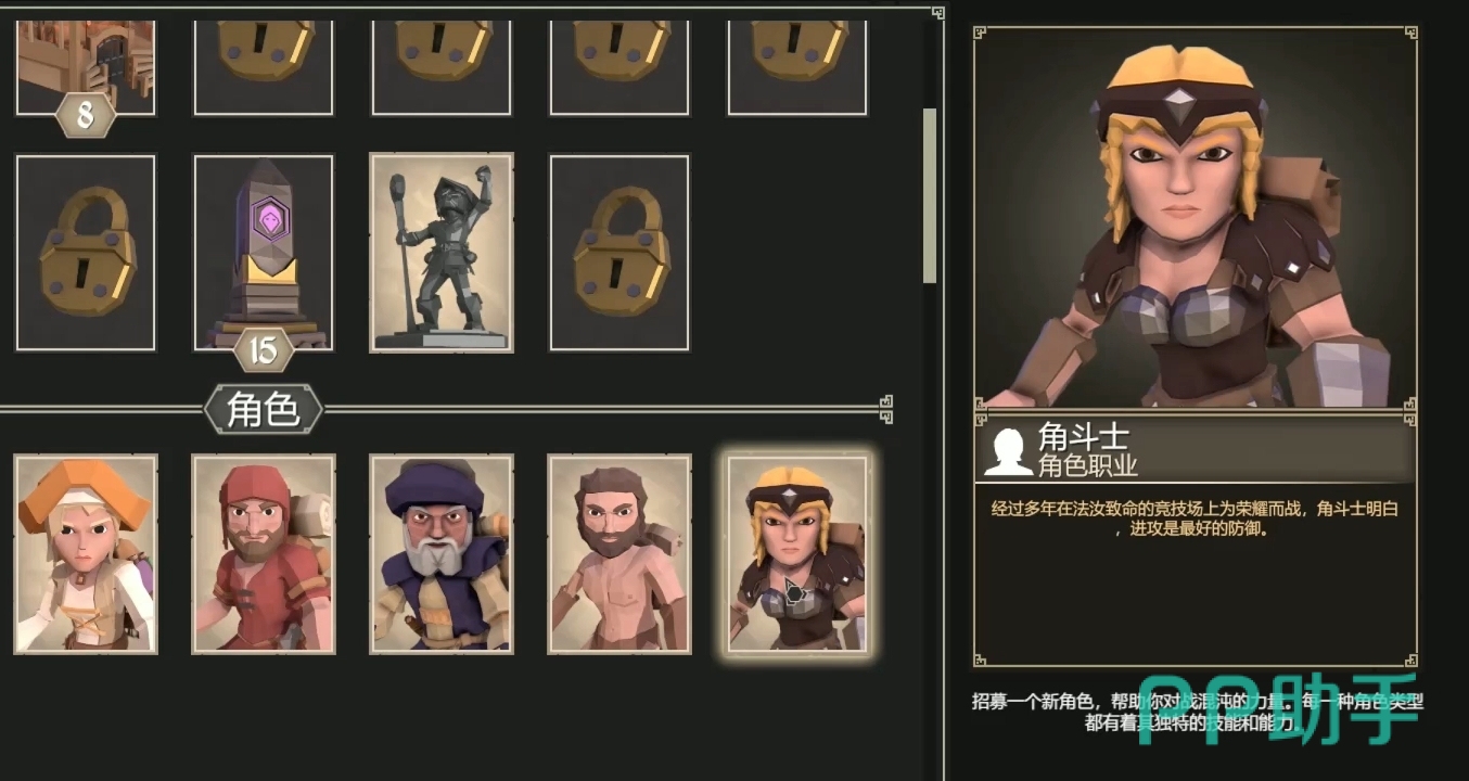 《为了吾王》中每位角色都有独特的解锁机制,玩家在满足特定条件后即可将其加入可用阵容。新角色会在下一次开局时出现在选择界面中。那么,如何解锁角斗士这一强力单位?该角色需通过完成一系列战斗挑战来获得,具体方法可参考以下说明。